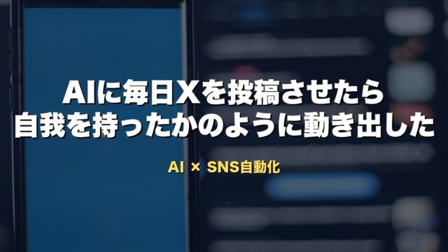 AI活用 AIに毎日Xを投稿させるよう仕組み化したら、まるで自我をもったかのように投稿がはじまった 2026-04-06 シャンディ やってみたら、思ったより全然ラクだった。 旅の発信とは別に、AI×副業というテーマで新しくXアカウントを作って、n8nというツールで投 …